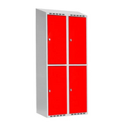 Helsvetsat SMG klädskåp med rakt eller sluttande tak. Klädskåpet har ljusgrå färg RAL7035 och 2 dörrar i höjd. Skåpet levereras färdig med cylinderlås eller klinka för hänglås monterat i dörrarna.