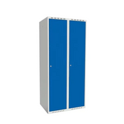 Helsvetsat klädskåp med plant tak. 1 fack i höjd. Ljusgrå pulverlackerad stomme RAL 7035. Levereras med färdigmonterad cylinderlås eller klinka för hänglås i skåpets dörr. Inredning med hatthylla samt klädstång med 2 st. ankarkrokar. Inbyggd ventilation i skåpets över och underkant. Totalmått (BxDxH) 300 x 550 x 1752 mm, eller 400 x 550 x 1752 mm.