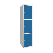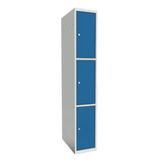 Helsvetsat SMT skolskåp i stål, med plant tak 3 fack i höjd. Skolskåpet har ljusgrå färg RAL7035.