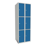 Helsvetsat SMT skolskåp i stål, med plant tak 3 fack i höjd. Skolskåpet har ljusgrå färg RAL7035.