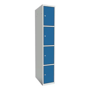 Helsvetsat SMT skolskåp i stål, med plant tak 4 fack i höjd. Skolskåpet har ljusgrå färg RAL7035.