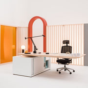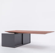 Fast och bekväm, trots tyngdkraften – Gravity tar idén om ett skrivbord till en helt ny nivå. Minimalistisk form, inspirerad av modern arkitektur, har integrerats med teknik. Stor skiva placerad på ett enda stödpunkt och den osynliga stödjande strukturen för tankarna till en flytande yta, medan den justerbara bänkskivan möjliggör ergonomiskt arbete och en mjuk övergång från sittande till stående.