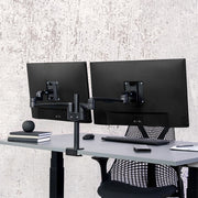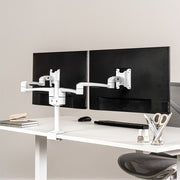•   Två 4-ledade monitorarmar för bordskantsmontage